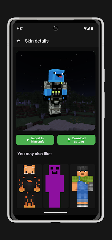 تصاویر پوست را مستقیماً از گالری عکس دستگاه خود وارد کنید. هر تصویر سازگار را به پوسته Minecraft تبدیل کنید و آن را به بسته های پوستی سفارشی خود اضافه کنید.