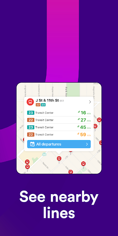 با ردیاب اتوبوس ما، مکان دقیق اتوبوس یا قطار خود را در زمان واقعی روی نقشه مشخص کنید. نگران شلوغی؟ ویژگی شلوغی بیدرنگ ما به شما اطلاعاتی درباره میزان شلوغی اتوبوس یا مترو شما قبل از رسیدن میدهد. با ردیاب ترانزیت ما پیش قدم باشید و از رفت و آمد بینظیر هر روز لذت ببرید.