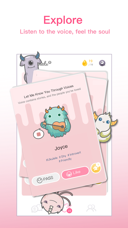 همخوانی داشتن. چت تاریخ. MonChats آسان و سرگرم کننده است و از ویژگی "Voice & Like" برای دوست داشتن استفاده کنید. اگر کسی شما را دوست دارد، این یک مسابقه است! ما انتخاب دوگانه را اختراع کردیم، به طوری که دو نفر تنها زمانی با یکدیگر مواجه می شوند. بدون استرس. بدون رد شدن فقط از طریق پروفایل های مورد علاقه خود، گپ زدن و صدای آنلاین با مسابقات خود ضربه بزنید، سپس از تلفن خود دور شوید، در دنیای واقعی ملاقات کنید و چیزی جدید را جار بزنید.