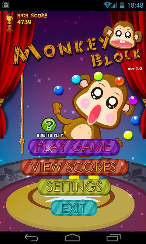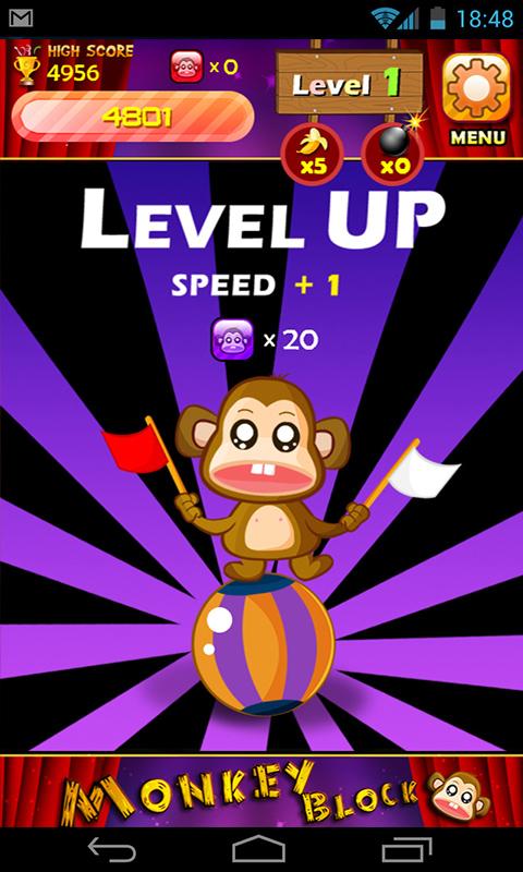 Here comes the snaggletooth-monkey!! If one wants to be a successful circus member, the rapid reaction is indispensable. Therefore, the snaggletooth-monkey can continue the next level only after clearing certain number of blocks in each level. Could you assist him to become a famous circus star?