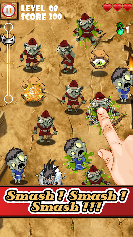 • Survival Mode, test your smashing skills and survive through the deadly waves of monsters. Challenge your friends to break your record.