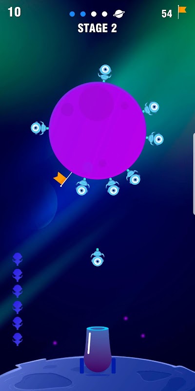 هیولا را در برابر هر سیاره شلیک کنید تا آن را نابود کنید. ضبط پرچم برای باز کردن هیولا های جدید و خنده دار. هر پنج سطح شما یک سیاره جدید برای تسخیر پیدا خواهید کرد.