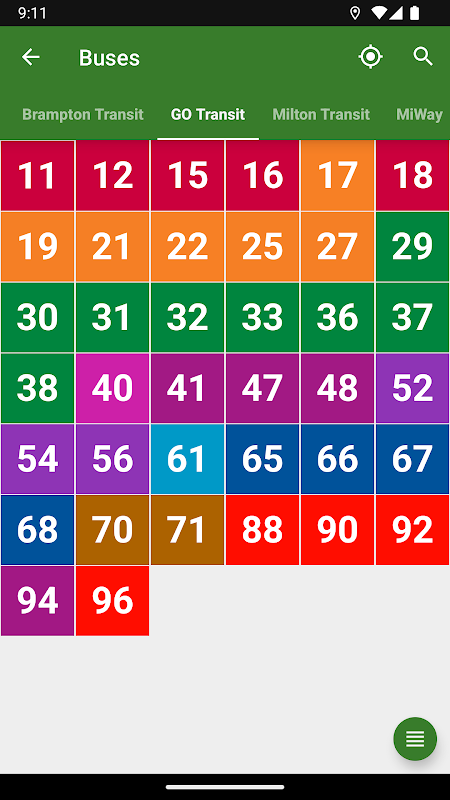 - روشن: GO Transit، GRT، HSR، MiWay، OC Transpo، TTC، YRT Viva، منطقه نیاگارا، سنت کاترینس…