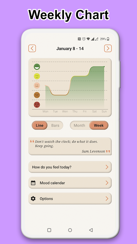 خلق و خوی روزانه خود را بدون دردسر با Mood Tracker پیگیری کنید.