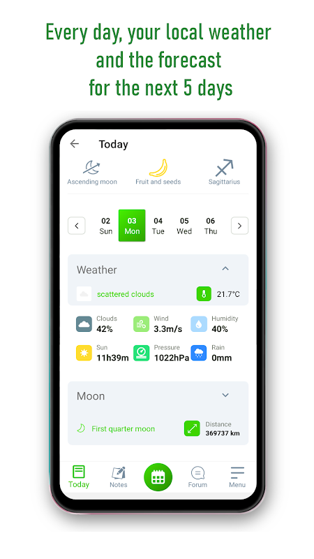 با Moon & Garden، همچنین می توانید یادداشت برداری کنید، مراحل قمری را بررسی کنید و از باغ ارگانیک خود عکس بگیرید و آنها را به اشتراک بگذارید.