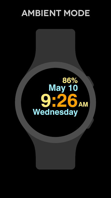 صفحه ساعت بزرگ برای Wear OS با 30 تم رنگی