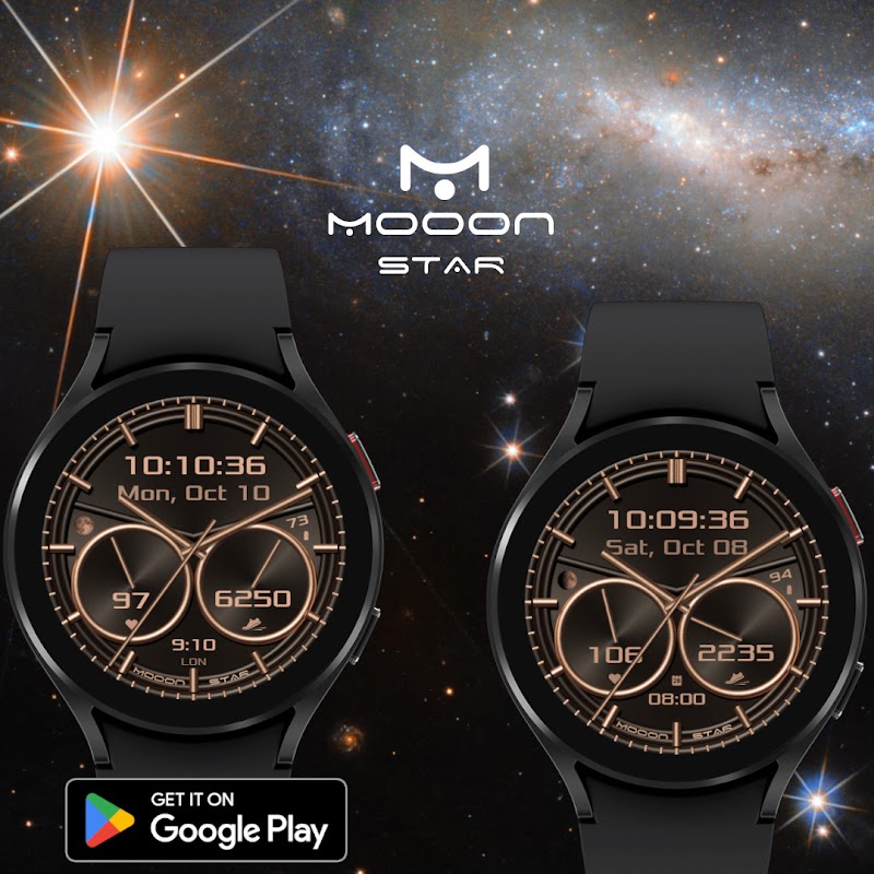 صفحه ساعت به سبک مینیمالیستی با فازهای ماه، تاریخ، ساعت آنالوگ و دیجیتال.