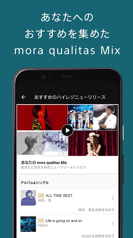 聴き込むほどあなたにフィットするホーム画面、あなたの為だけに用意したプレイリスト「mora qualitas mix」等、新しいお気に入りとの出会いをお楽しみください。