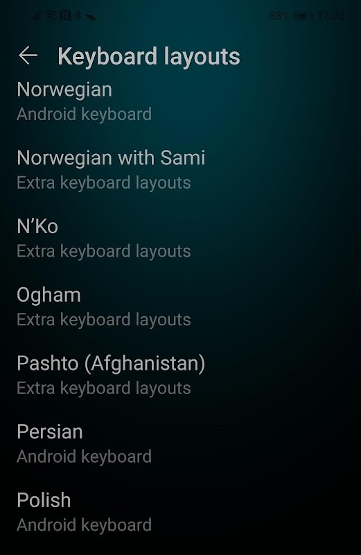 چند گزینه را به لیست طرحبندیها اضافه میکند تا از آنها هنگام اتصال یک صفحه کلید فیزیکی استفاده کنید، به عنوان مثال. از طریق OTG یا بلوتوث