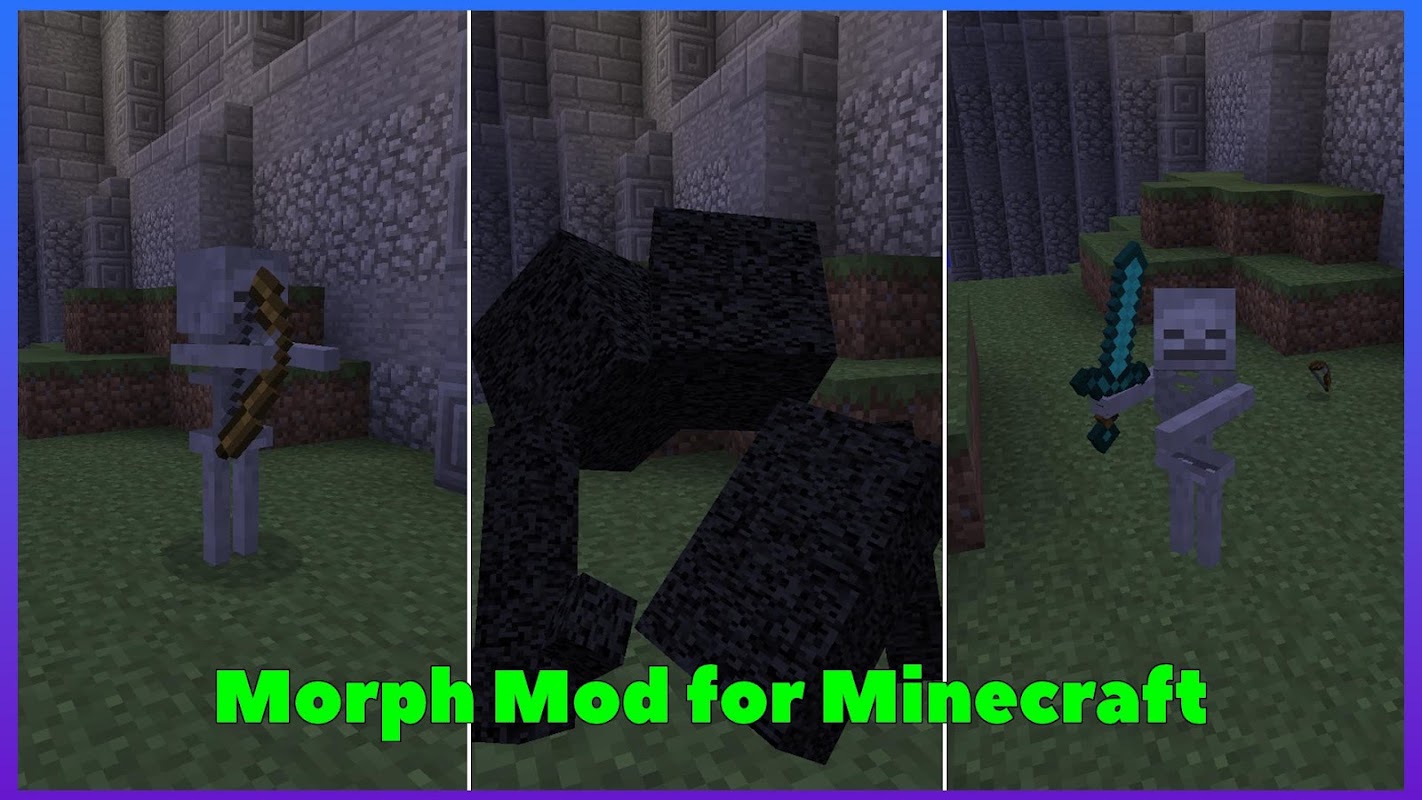 The famous Morph mod for mcpe , we add an option to download and install skins & mod with Morph, and you can use that in game , all this just to make your favorite game characters better and share to your friends or your family to make a simple skins and mod for Minecraft game with your idol Morph.