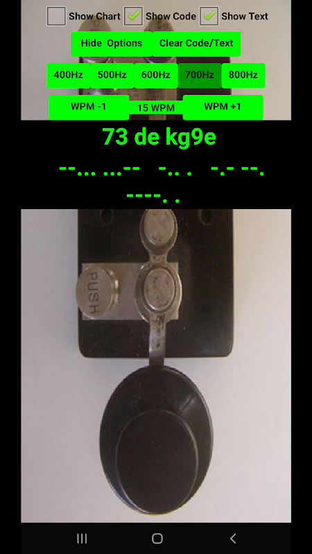 ارسال کد بینالمللی مورس را با این اهرم افقی مستقیم برنامه نوسانساز تمرین کد مورس برای تلفنهای هوشمند و تبلتهای اندرویدی تمرین کنید. این برنامه به تنهایی است و مستقیماً با رادیو شما ارتباط برقرار نمی کند تا یک دستگاه کلید زنی ارائه کند. با این حال، میتوانید از ویژگی چراغ قوه برنامه، یک ترانزیستور نوری، و یک رابط 2 سیم برای کلید مستقیم فرستنده استفاده کنید.