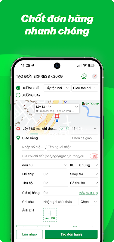 سفارش را ببندید و فقط با 3 مرحله آن را به سیستم GHTK بر روی برنامه فشار دهید: چت، انتخاب اطلاعات و فشار دادن سفارش.