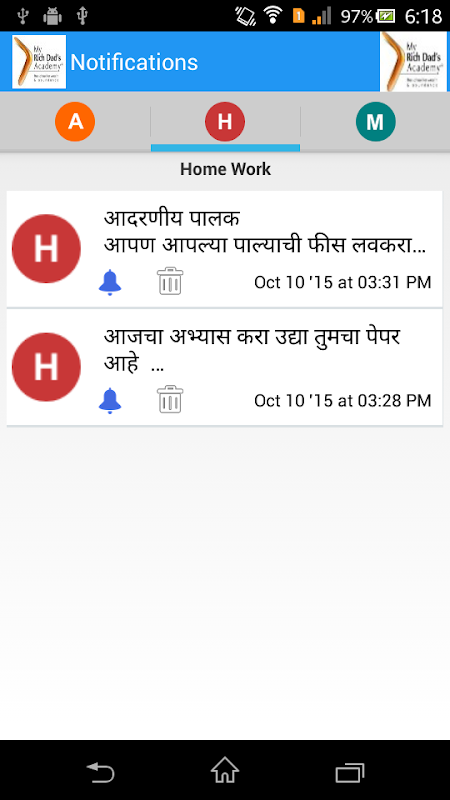 و گاو نر. هشدار از طریق: مدارس قادر به ارسال پیام به پدر و مادر در مورد تکلیف روزانه، دانشکده اطلاعیه ها و یا حتی پیام خاص. والدین می توانند یادآوری برابر هر یک از آنها دریافت می کنند اطلاع رسانی تنظیم شده است. مدرسه نیز قادر به ارسال فایل پیوست را مانند سند، اکسل، تصویر، PDF و غیره همراه با پیام.