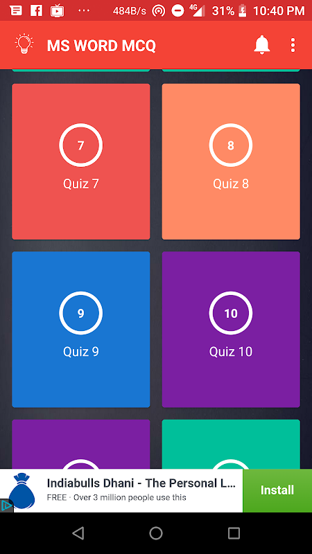 The application offers online test series of multiple choice questions (MCQ) of MS WORD