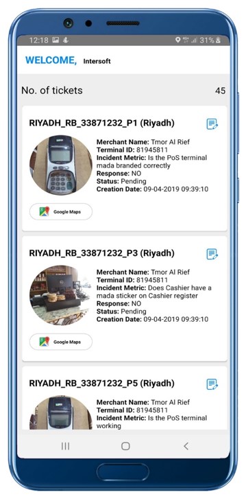هنگامی که یک حادثه برطرف شد ، فروشنده در مزرعه و با استفاده از تلفن هوشمند خود نیاز به عکس گرفتن دارد. بانک این گزینه را دارد که کارهای تعمیر را رد یا تأیید کند.