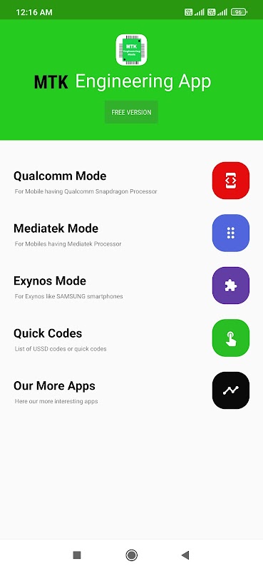 همانطور که از نام آن پیداست این برنامه دسترسی مستقیم به تنظیمات حالت مهندسی MTK را فراهم می کند. برنامه مهندسی MTK به شما آزادی انتخاب نوع دستگاه را می دهد و پس از آن می توانید به راحتی به حالت مهندسی یا حالت سرویس خود دسترسی پیدا کنید. علاوه بر این، این برنامه لیستی ارائه می دهد که تمام اطلاعات مربوط به کدهای USSD یا کدهای سریع را دارد تا بتوانید به راحتی آن کد را در صفحه شماره گیر خود تایپ کنید و به صورت دستی به آن حالت خدمات خاص دسترسی پیدا کنید.