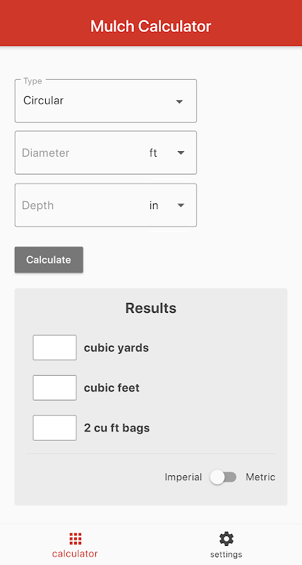 این برنامه مقدار مالچ مورد نیاز در حیاط های مکعب ، کف مکعب ، متر مکعب ، لیتر و تعداد کیسه های مالچ مورد نیاز را صادر می کند.