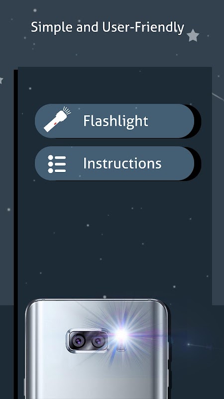 Easy to use, fast and reliable flashlight flashlight can be used free of charge. You can turn your phone into a super bright LED flashlight by clicking it.