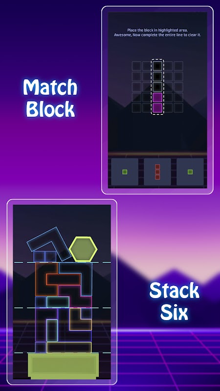 ○ بازی Stack Six: برای ساختن برج های بلند بلوک ها را با دقت پشته کنید. هر سطح اشکال جدیدی را اضافه می کند و برای جلوگیری از فروپاشی و صعود به بالاتر، نیاز به دقت دارد.