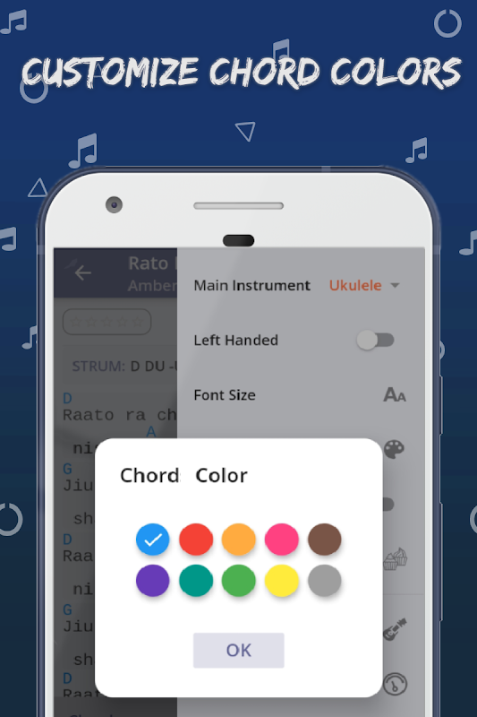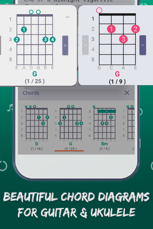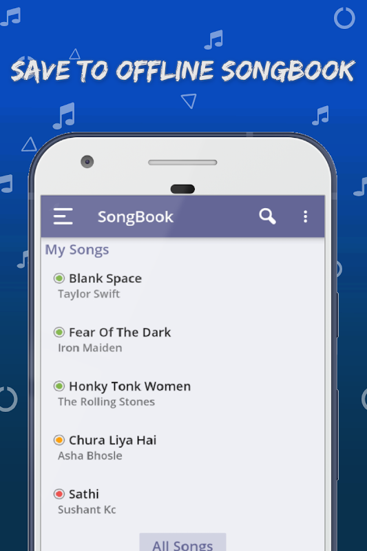 متن ترانه ها و آکوردهای آهنگ های انگلیسی، آهنگ های هندی/بالیوود و اشعار آهنگ های نپالی با نمودارهای آکورد گیتار و یوکلله. اگر به دنبال متن آهنگ، یادگیری یک ساز موسیقی (گیتار، یوکلله، پیانو، ویولن) هستید یا به دنبال یک برنامه برای یک جلسه جم هستید، این یک برنامه عالی برای شماست.