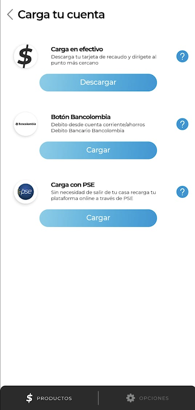 Incluimos Tarjeta de Recaudo Bancolombia y Davivienda para cargar la cuenta
