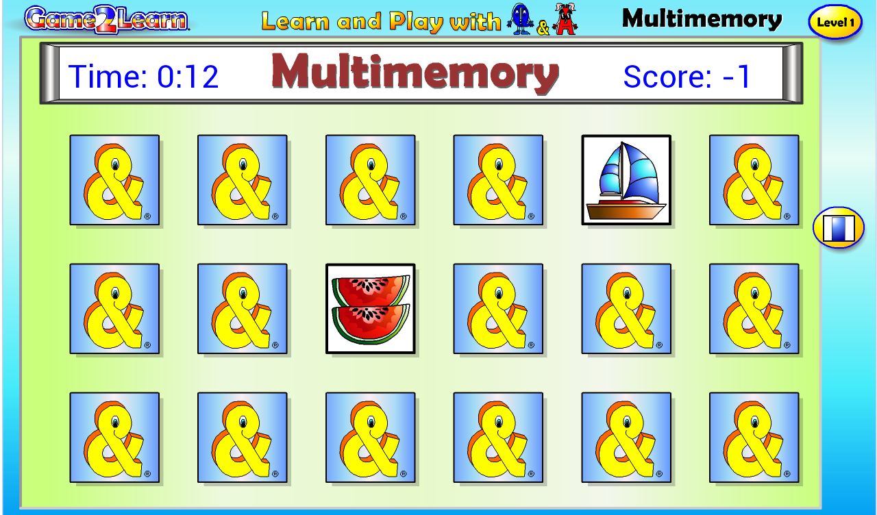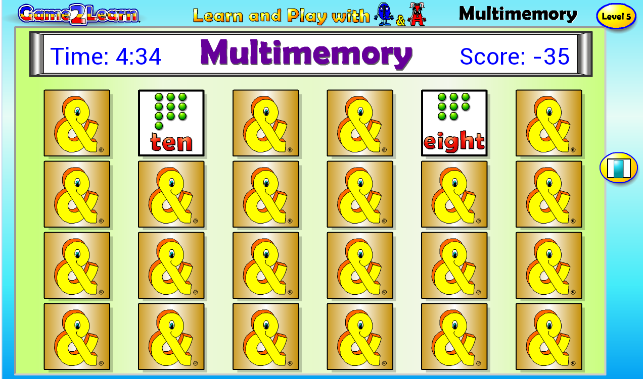 Multimemory with Q&A also uses a time taken and score approach to challenge children to beat their previous scores. This adds a degree of challenge that increases their engagement with the game as the levels become progressively more demanding.