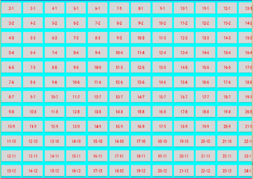 جدول ضرب یک جدول و 144 دکمه.