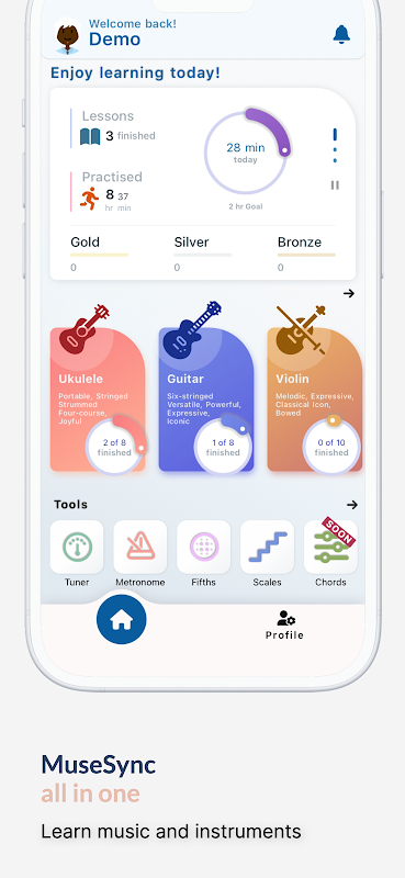 موسیقی را به روشی سرگرم کننده با ابزارهای موسیقی پیشرفته برای ساز مورد علاقه خود بیاموزید.