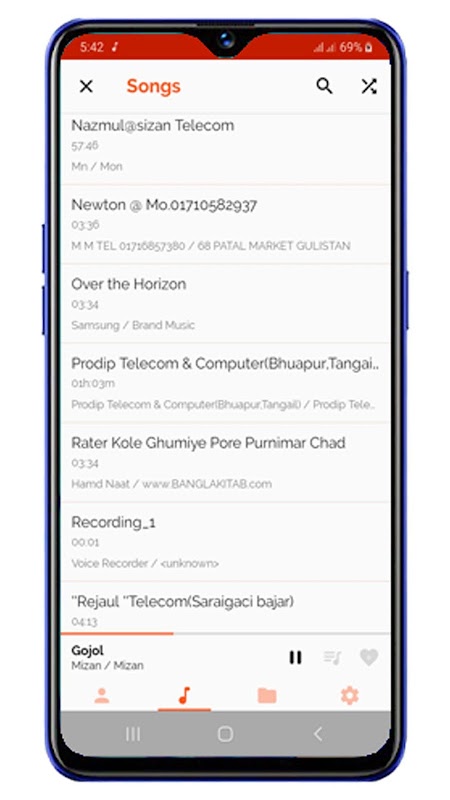 Download the Best Music Player Application. No type of ad will disturb you. It is a very small application but very smart. It has interesting UI design and User Friendly.