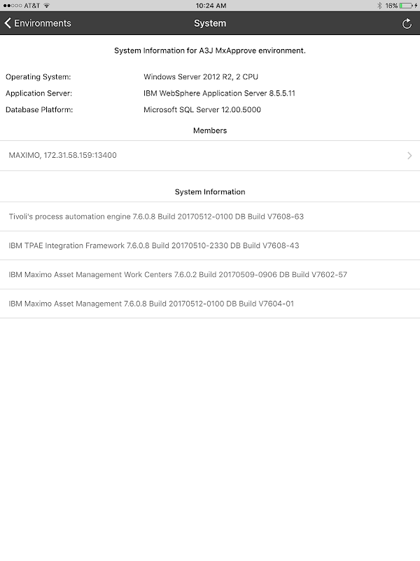 در این جاست که MxAdmin می آید. کاربران می توانند هر تعداد از محیط آی بی ام ماکسیمو در داخل نرم افزار ثبت نام کنید. برای هر محیطی که قادر به دیدن اطلاعات زیرساخت ها، مانند درخواست سرور و پایگاه داده بستر های نرم افزاری، زمان واقعی اطلاعات وضعیت هر عضو در این مثال ماکسیمو، اطلاعات نسخه و بیشتر خواهد شد.