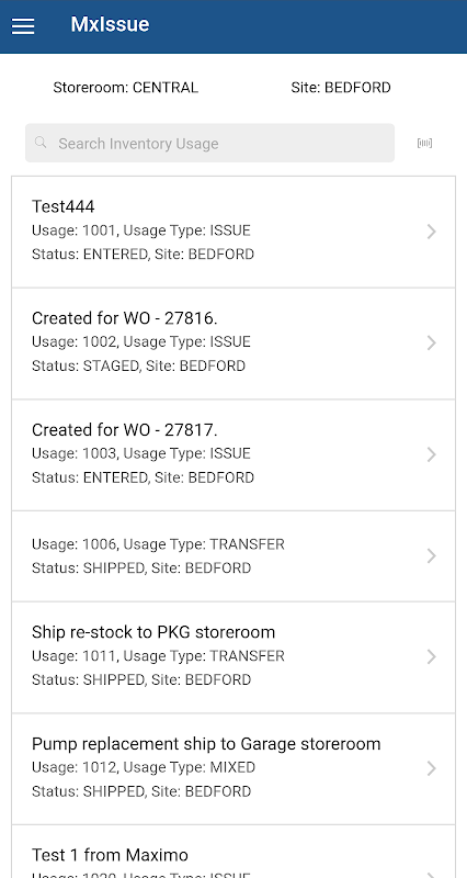 MxIssue توسط گروه A3J ، LLC یک نرم افزار تلفن همراه برای صدور و بازگرداندن قطعات در IBM Maximo Asset Management است. MxIssue به جای گرفتن اطلاعات بر روی کاغذ و رونویسی اطلاعات به سیستم روی رایانه رومیزی ، به کاربران این امکان را می دهد تا قطعات را درست در منبع صادر و بازگردانده کنند. کاربران می توانند بارکدهای مورد یا کدهای QR را برای یافتن سوابق اسکن کنند ، در صورت فراتر رفتن تعادل ، بازخورد فوری را دریافت کرده و قطعات را در ماکسیمو در زمان واقعی از دستگاههای خود صادر کنند. MxIssue صدور قطعات را آسان می کند ، که اعتماد سازمانی به داده های آنها ایجاد می کند. همه در حال انجام است ، و همه با استفاده از IBM Maximo API مجاز.