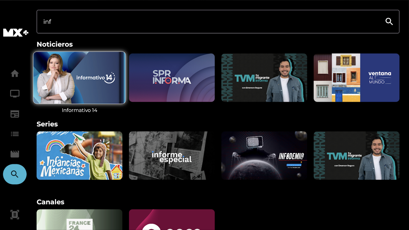 از پخش زنده کانالهای ملی مانند TV Migrante، Canal Catorce، Canal Once، Capital 21، TV UNAM، سیستم ارتباطات ایالتی پوئبلا و سیستم رادیو و تلویزیون میچوآکان و همچنین کانالهای بینالمللی مانند France 24 (فرانسه)، Deutsche Welle (آلمان) و RT (روسیه) لذت ببرید.