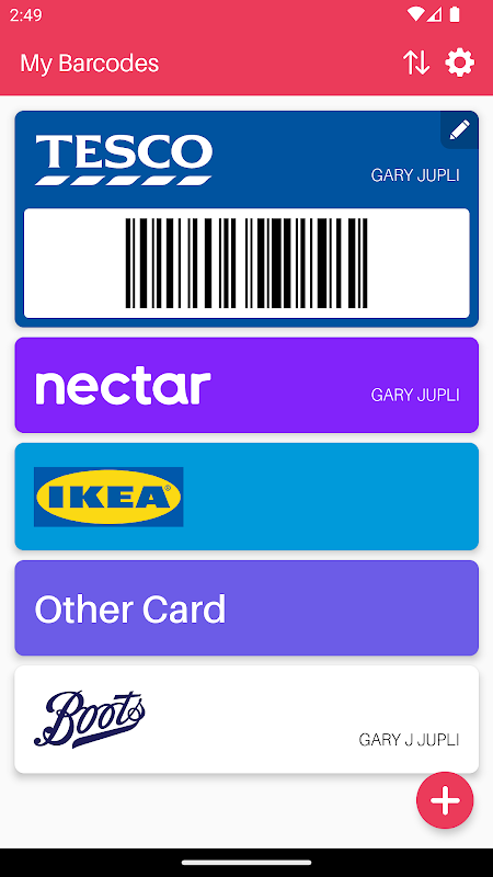 یک برنامه ساده برای ذخیره کارت های وفاداری، کارت های هدیه یا هر چیز با بارکد!