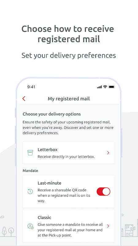 ■ اولویت تحویل خود را برای نامه های ثبت شده تنظیم کنید. به ما اطلاع دهید که چه کسی مجاز به دریافت نامه ثبت شده شما است یا انتخاب کنید که مستقیماً به صندوق پستی شما تحویل داده شود. آیا ترجیح می دهید نامه خود را یک روز بعد دریافت کنید یا بلافاصله آن را از اداره پست یا پست پستی تحویل بگیرید؟ فقط به ما اطلاع دهید