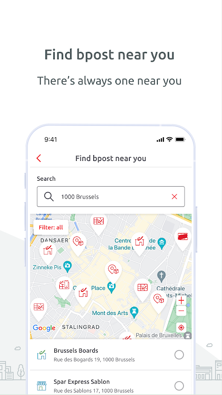 ■ نقاط تحویل و نقاط تحویل را پیدا کنید. با بیش از 3100 اداره پست، پست پست، پست بسته و قفسه بسته، همیشه یکی را در نزدیکی پیدا خواهید کرد.