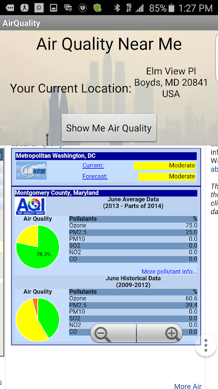 My Environment, is an application designed to notify, aid, and educate people who have environmental allergies about which areas have high pollen, the air quality of these areas, as well as educate them about their allergies and what might cause them. It uses a location sensor present in the user's device to retrieve the current location of the user and uses that location to retrieve the air quality and amount of pollution in that area based on what you select. If the user’s device does not support location sensing, the app automatically alerts the user and notifies them that their device is not supported but they may still use the learning features of our app. Information about air quality is provided from the EPA's (Environmental Protection Agency) website. As your location changes, the app automatically changes the information associated with that location.
