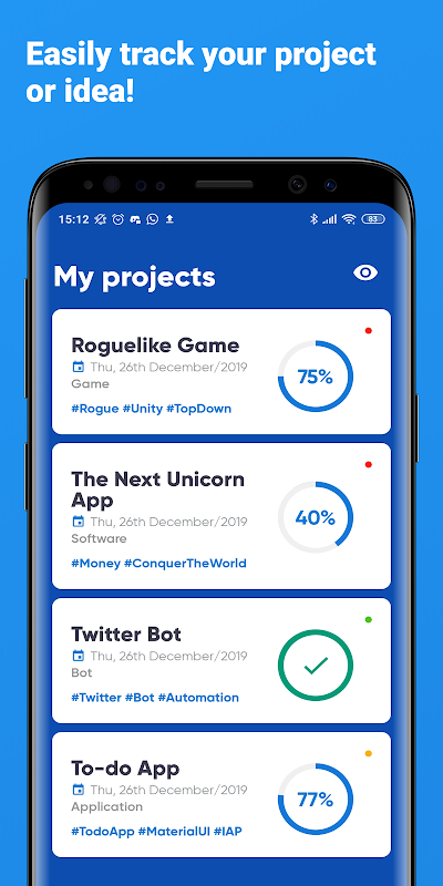 My Awesome Idea یک برنامه برای شماست که ایده ها / پروژه های خود را فراموش نکنید ، از طریق لیست های چک و جلسات پیشرفت خود را برنامه ریزی و پیگیری کنید.