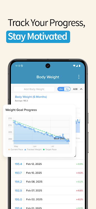 • وزن خود را در طول زمان به راحتی پیگیری پیشرفت خود را