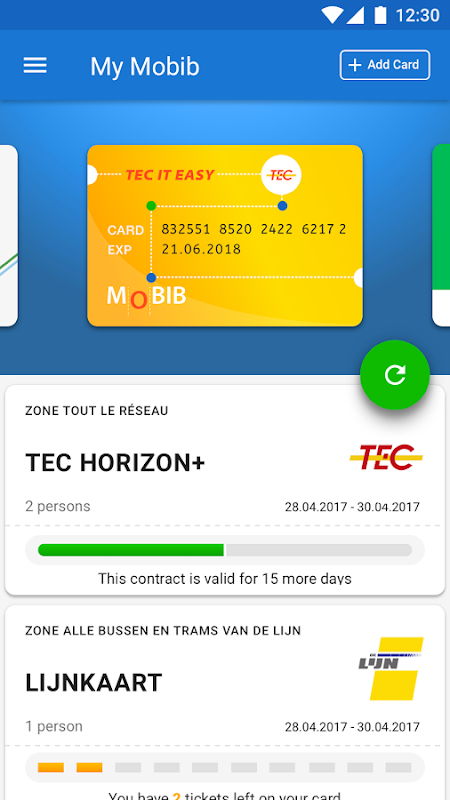 این برنامه به شما امکان می دهد بلیط های حمل و نقل MoBIB را برای تمام اپراتورهای حمل و نقل عمومی بلژیکی SNCB، STIB، De Lijn و TEC بخوانید (با اسکن NFC). حضور، اعتبار اشتراک خود، تعداد بلیط ها و مدت زمان باقی مانده سفر را بررسی کنید. از این پس فرآیند ترجمه محتوای کارت از طریق سرور ما (آنلاین) انجام می شود که سرعت شناخت محصولات جدید راه اندازی شده توسط اپراتورهای حمل و نقل را افزایش می دهد.