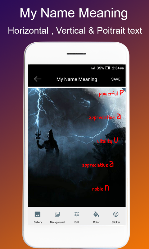 این برنامه بهترین ها را برای افزایش خلاقیت شما به ارمغان می آورد. به سادگی نام خود را اضافه کنید و بر روی تولید صفحه بعدی کلیک کنید معنای فوق العاده ای از شخصیت های نام شما خواهد داشت.
