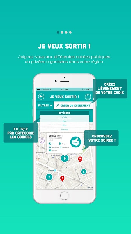 ▫ Créez un événement pour organiser vos soirées puis les partager sur la Map