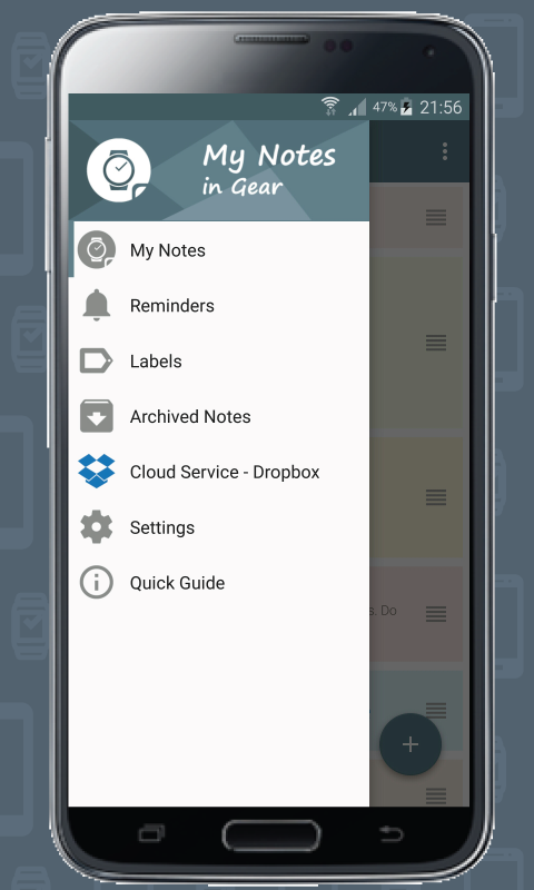 "یادداشت های من در دنده" به ارمغان می آورد یادداشت ها و چک لیست خود را به مچ دست خود، آن را به عنوان برای ساعت های هوشمند سامسونگ دنده در دسترس است. مشاهده یادداشت و فایل پیوست تصویر خود را، چک کردن خود را به داس، ویرایش یادآوری خود را دریافت و در دنده خود را مطلع.