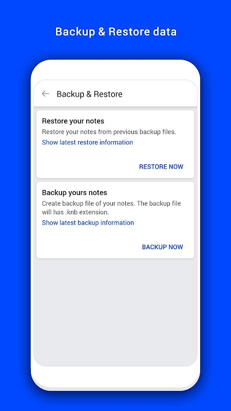 - Backup, restore and sync your notes via Google Drive or backup restore data directly from file in phone