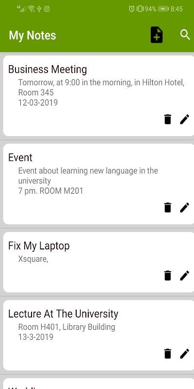 My Notes Application helps you to be more productive during the day by writing your notes.