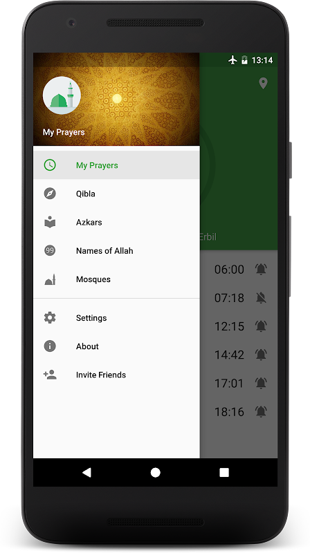 • تغییر خودکار گوشی در زمان نماز به حالت بی صدا، با تنظیمات برای هر نماز.