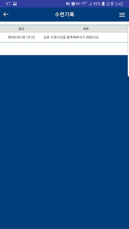 모바일 어플리케이션에서 발생된 수련일정 등록안내 푸시 알림 목록을 조회할 수 있습니다