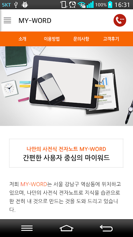 저희 MY-WORD는 서울 강남구 역삼동에 위치하고 있으며, 나만의 사전식 전자노트로 지식을 습관으로 완 전히 내 것으로 만드는 것을 도와 드리고 있습니다.