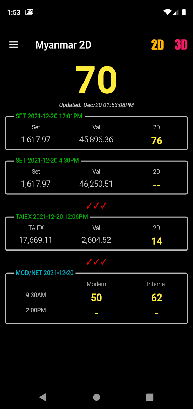 - به روز رسانی در زمان واقعی Thai2D/3D برای (9:00 صبح تا 4:00 بعد از ظهر)