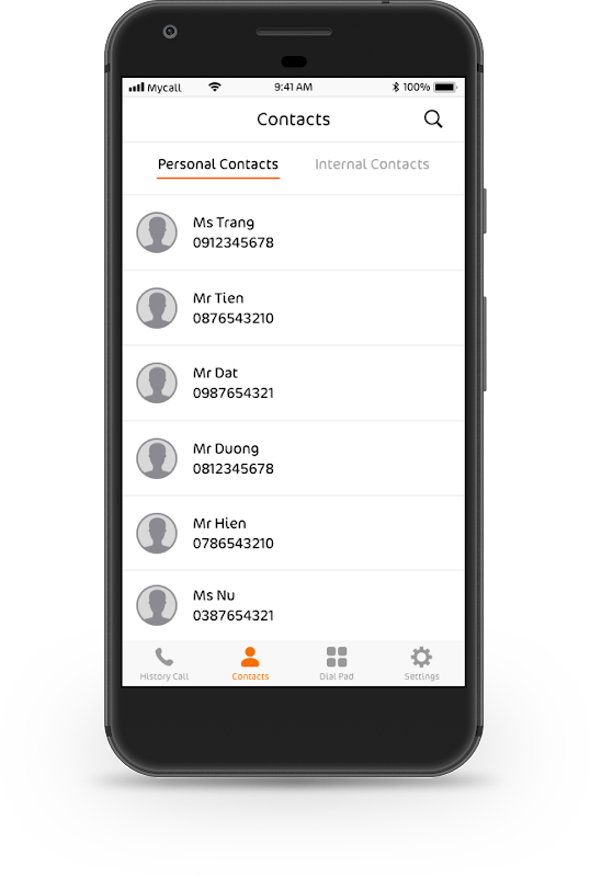 Mycall یک برنامه PBX تلفن همراه برای شرکت است