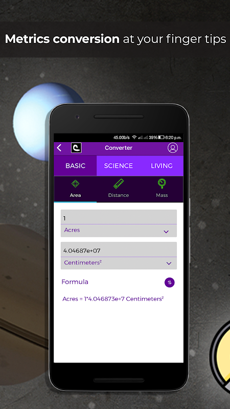 Conversion could be a tricky task. There are so many metrics out there and so many different formulas. With converter you can effortlessly convert within various metric systems without a sweat.